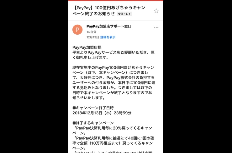 ペイペイ100億円キャッシュバックキャンペーン終了のお知らせ