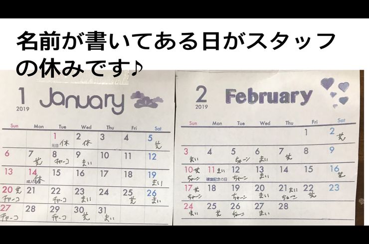1月2月のお休み♪